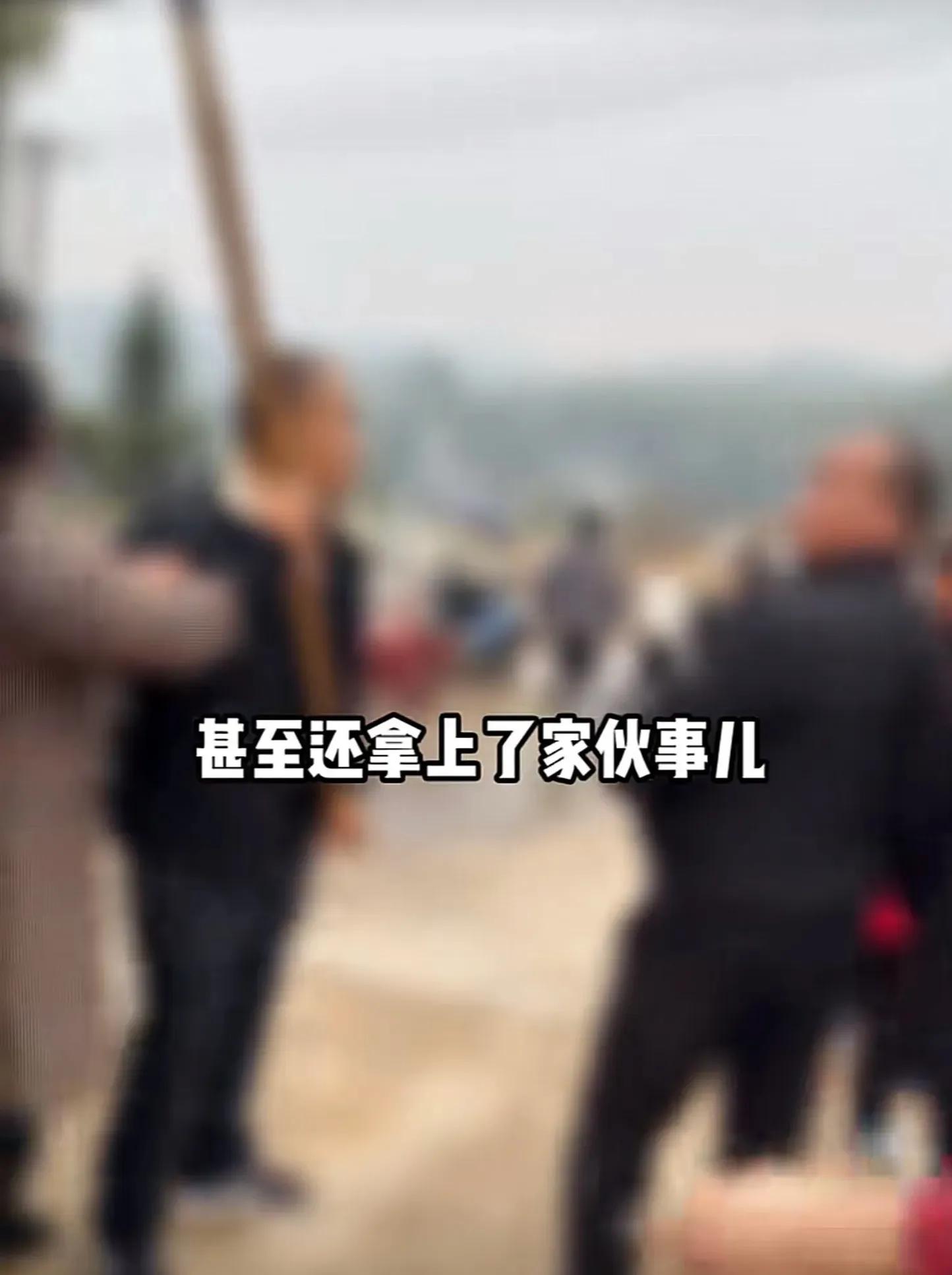 也不知道是不是双方出现了争执,有其他村民突然和这一群拍视频的人起了纠纷,部分村民甚至还拿起来了东西,眼看双方矛盾就要升级。