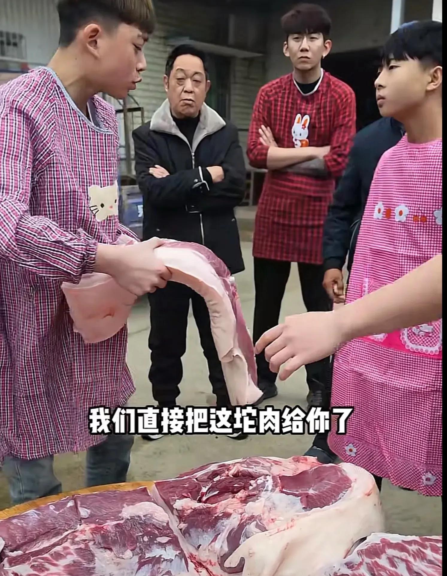 其实这些小伙开始的时候给了主家一块大概十几斤的猪肉,想着使用了别人的场地,这也是情理之中的事情。