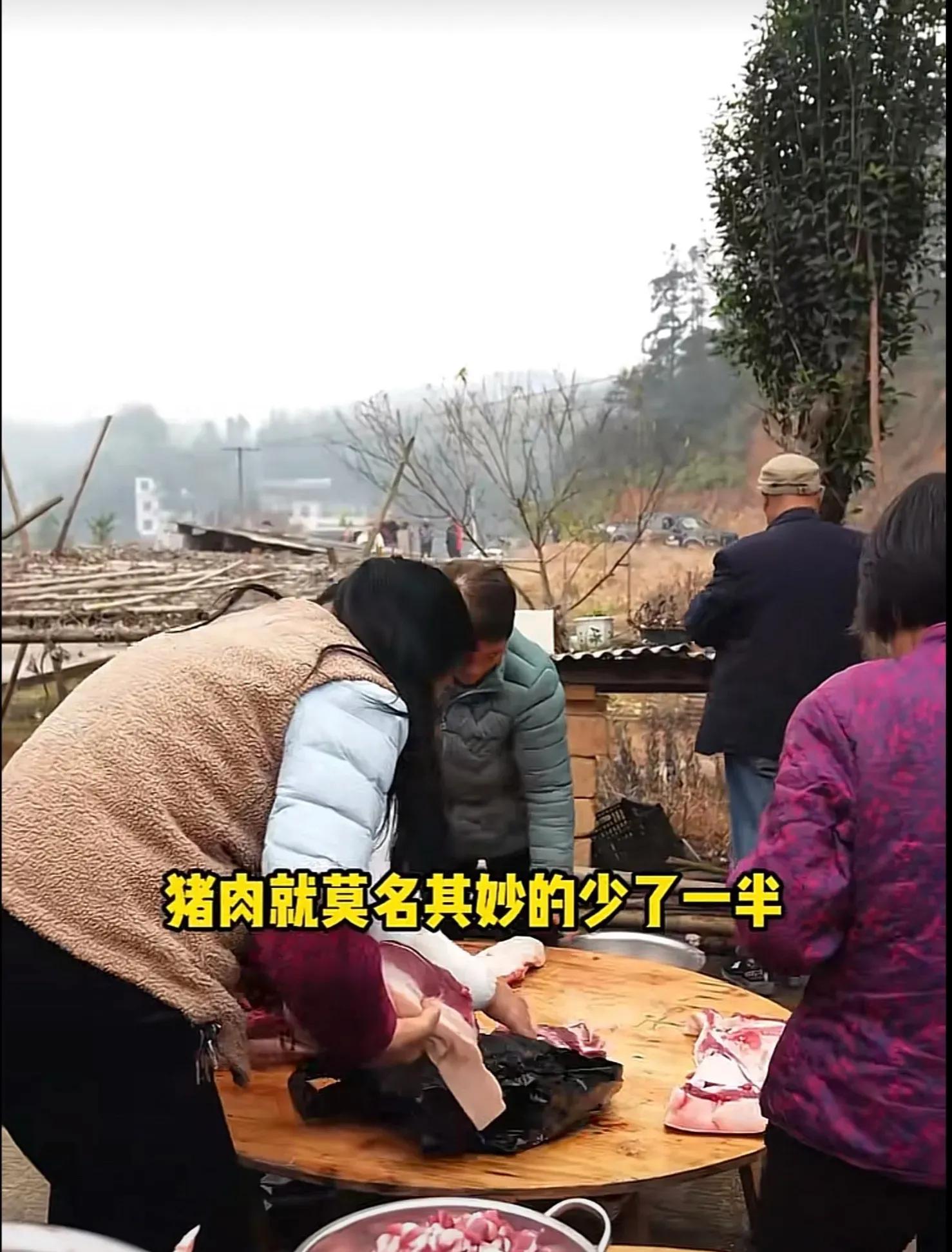 据视频主播介绍,就在各个小伙通知村民过来参与杀猪宴活动的间隙,猪肉莫名其妙的少了不少。