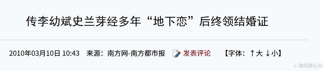 信息来源:2010年03月10日南方网-南方都市报传李幼斌史兰芽经多年“地下恋”后终领结婚证