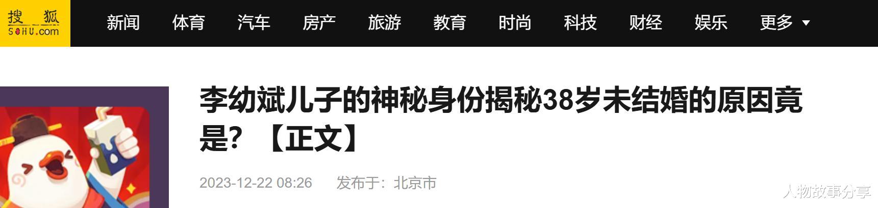 搜狐娱乐2023-12-22李幼斌儿子的神秘身份揭秘38岁未结婚的原因竟是?【正文】
