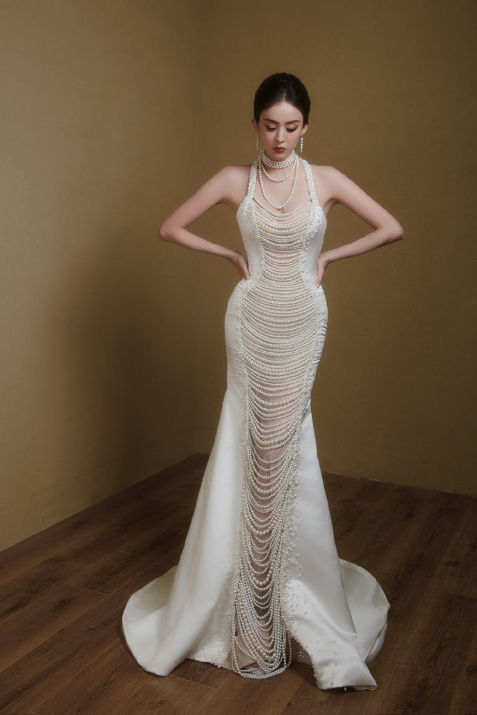 古力娜扎珍珠礼服,演绎纯白优雅神话!