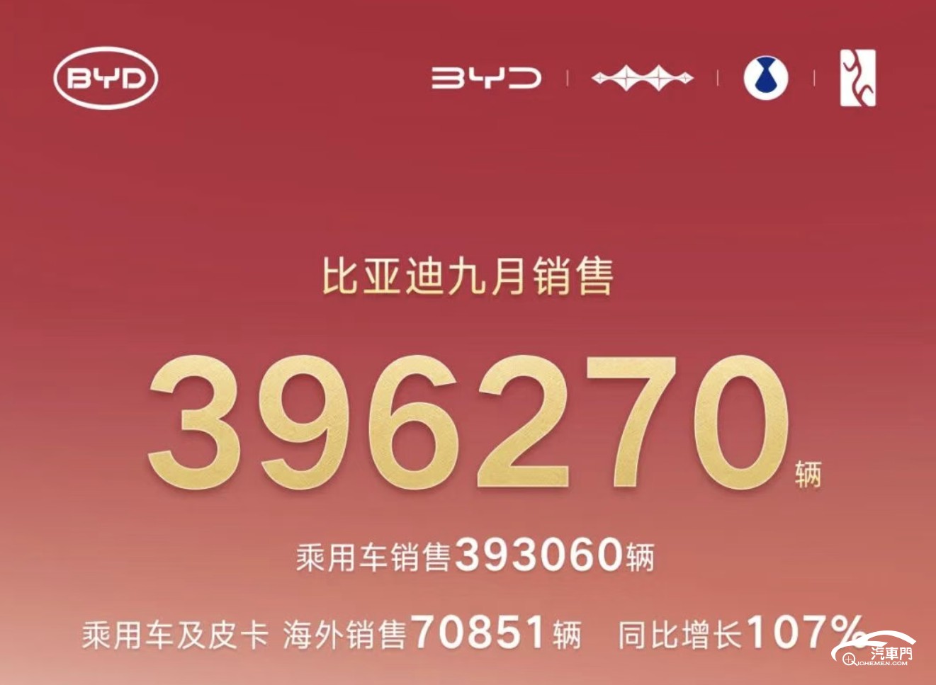 三方平台数据显示,比亚迪10月1日-10月6日新增订单已达到26.9万辆,远超去年国庆7天的16.8万辆。而这,或在一定程度上助力比亚迪10月份销量突破40万辆。