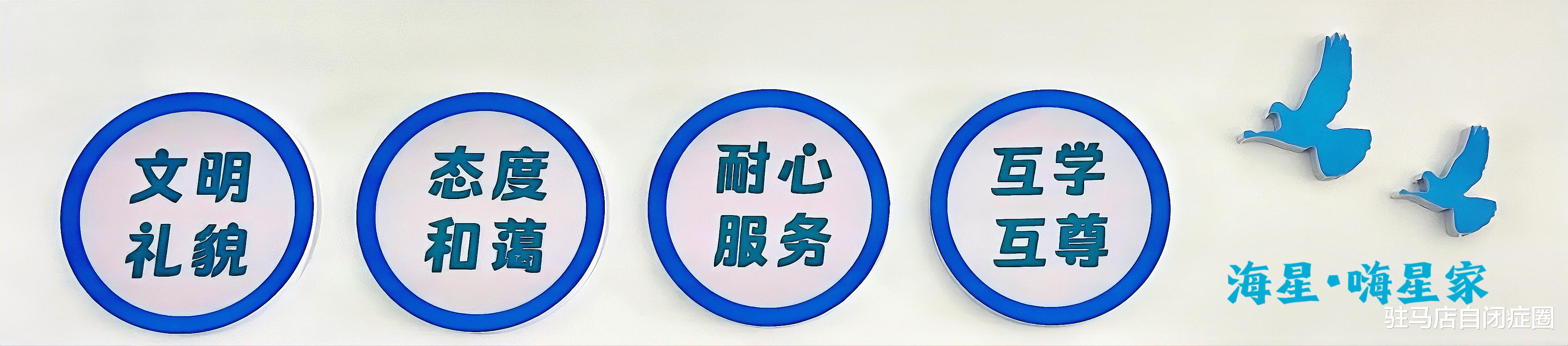 ◀门脸新颜 初心不变 ▶这里是团结协作、互学互尊的海星人,我们成立于2008年9月,扎根驻马店,服务豫南,致力于为自闭症谱系障碍、语迟、社交障碍、智力障碍、学习困难、注意力缺陷、唐氏综合征等有言语、认知、社交、情绪行为干预需求的儿童提供专业的个性化康复服务,为特需儿童家庭提供咨询、心理疏导服务。