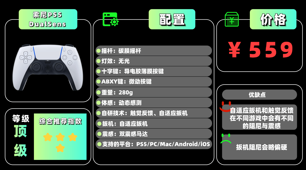 4.索 尼:用料扎实耐用,适配精准,多平台兼容体验不错。