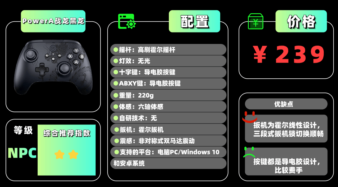 全网热卖品牌3.P owerA战 龙黑龙游戏手柄