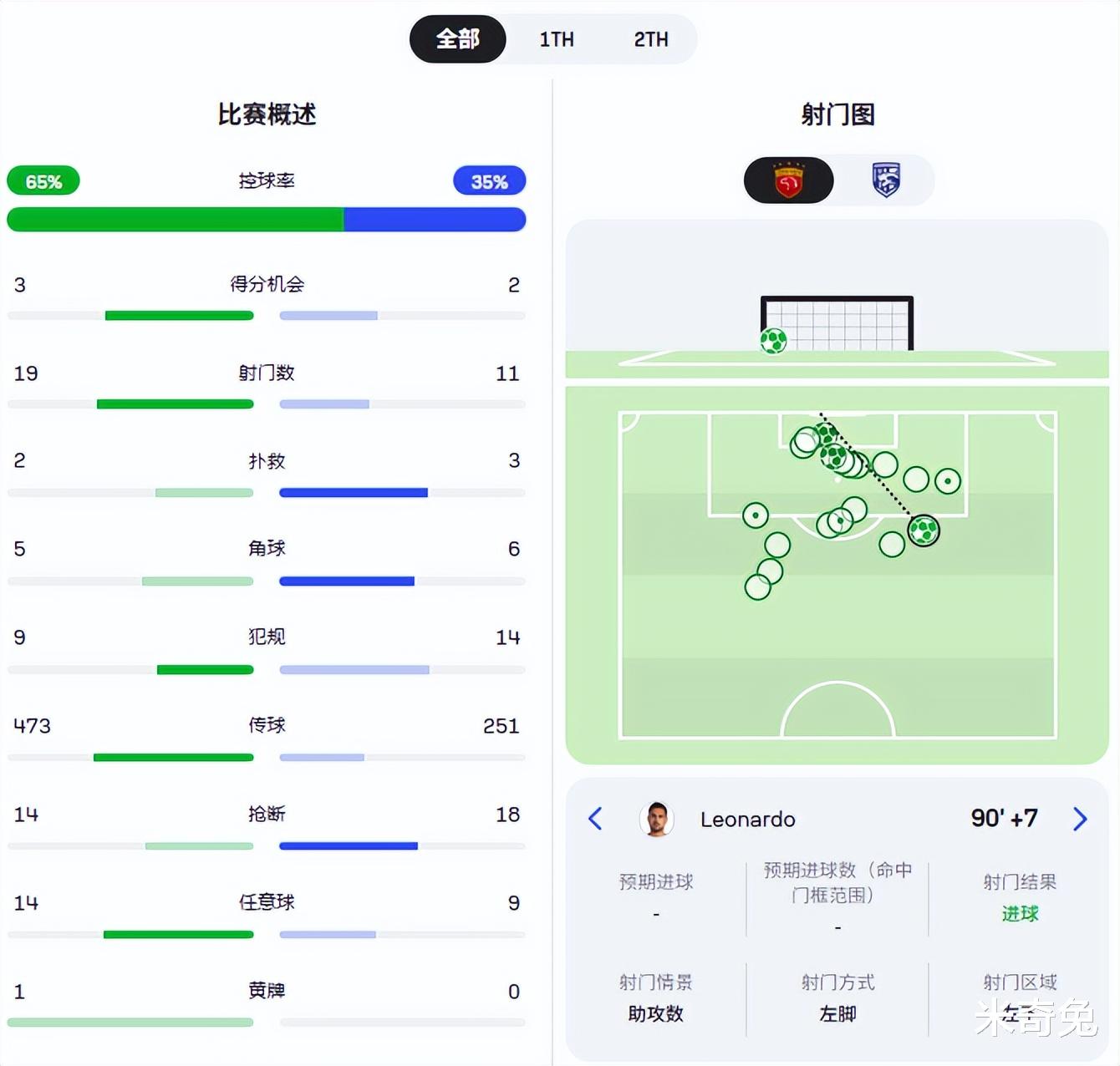 最终莱昂纳多本赛季第二次打出一记弹地的远射,第二次帮助球队逆转获胜。