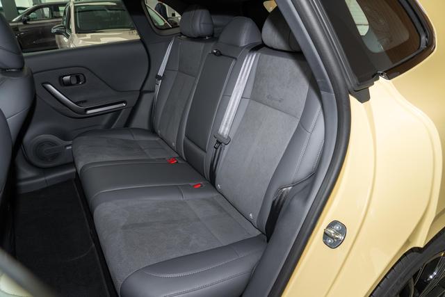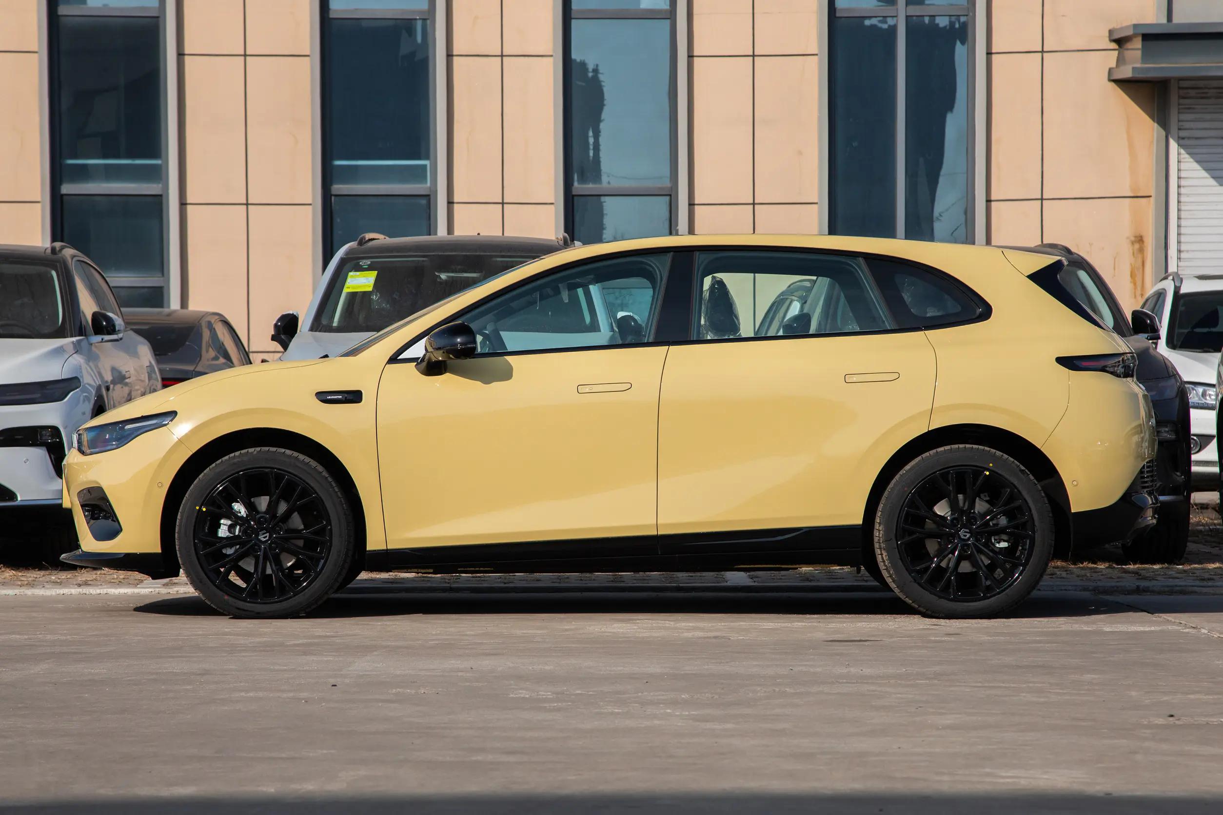 19英寸掠翼运动轮毂辨识度满满,还用上了前窄后宽的“鸳鸯胎”设计,一看就不是走中庸路线的。车身颜色有六种可选,电掣黄和风驰灰是非常规颜色,我现场看了电掣黄实车,阳光下颜色很正,一点不廉价,开在路上大概率不会和别人“撞脸”。另外还有AGS主动进气格栅在内的16项空气动力学优化,风阻系数做到0.256,虽然不懂具体原理,但销售说能提升续航,这点倒是很实用。