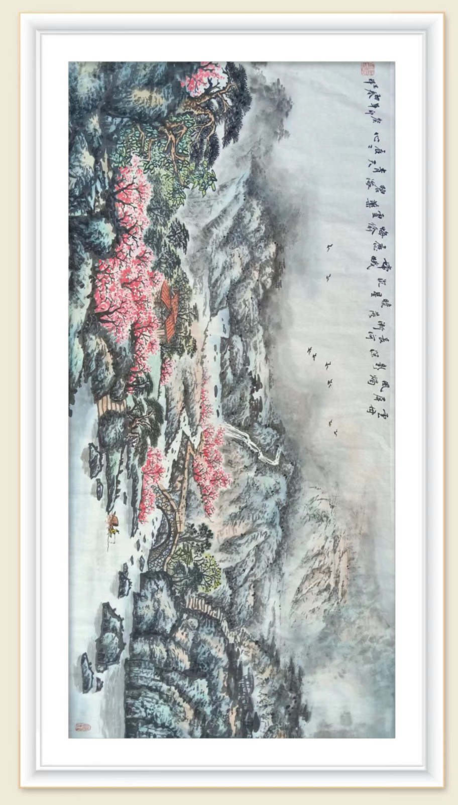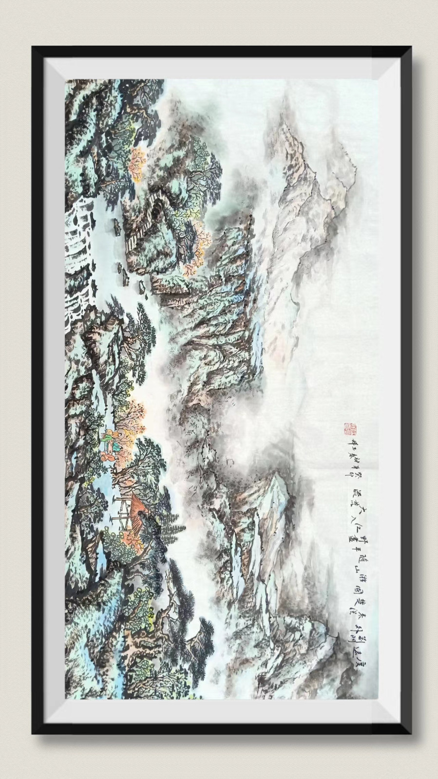 山水画的意境就是山水画所创造的境界,主张以意为主,强调表现,意造境生,营造“山性即我性,山情即我情”的境界。陈玉祥的山水画作品,所创造的意境不仅是优美的景色、山川的风光,更多的是画家对理想境界的一种追求,是超脱于烦琐与庸俗社会的心灵居所,山水画的境界给人的是可观、可行、可游、可居的神游场所,在画中有人物的缩影,有动物的神态,也有山水的结合,不同的画作结合不同的创作环境,展现着陈玉祥个人的艺术素养与生活阅历的集中体现。