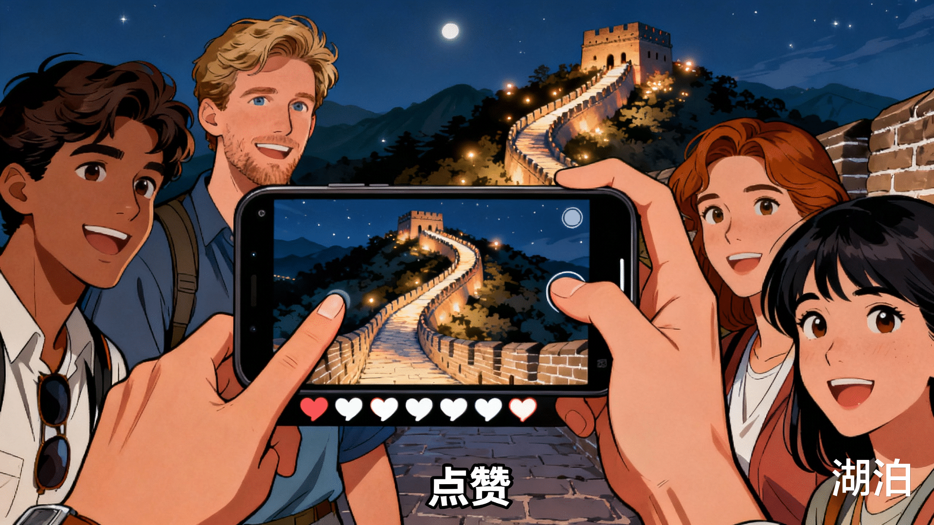 除此之外,社交平台上,大量游客真实分享的视频短片,成为最佳的宣传渠道。一段地摊美食的视频日记,或长城徒步的短视频,就能迅速地吸引成千上万的点赞与关注。