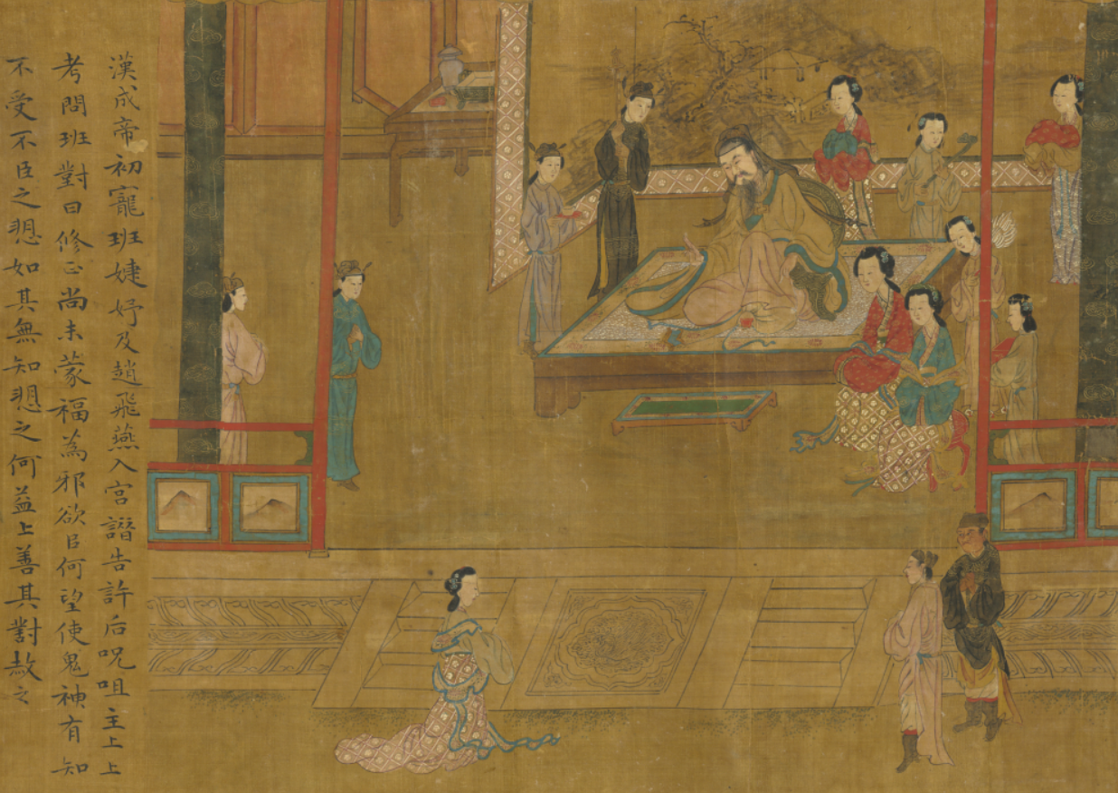 ——班婕妤(汉成帝嫔妃,善诗赋、音律,熟悉史事,有美德。她也是班固、班超和班昭的祖姑。后为赵飞燕所谮,自请侍奉太后。成帝卒后,她奉守陵园终老。作有《自伤赋》《团扇歌》等)、左棻(左思之妹,晋武帝司马炎的嫔妃。文辞甚丽,皇帝常诏她献赋作颂。体羸多病,久居薄室),文风高远厚重质朴,在深宫之中孤寂度日。