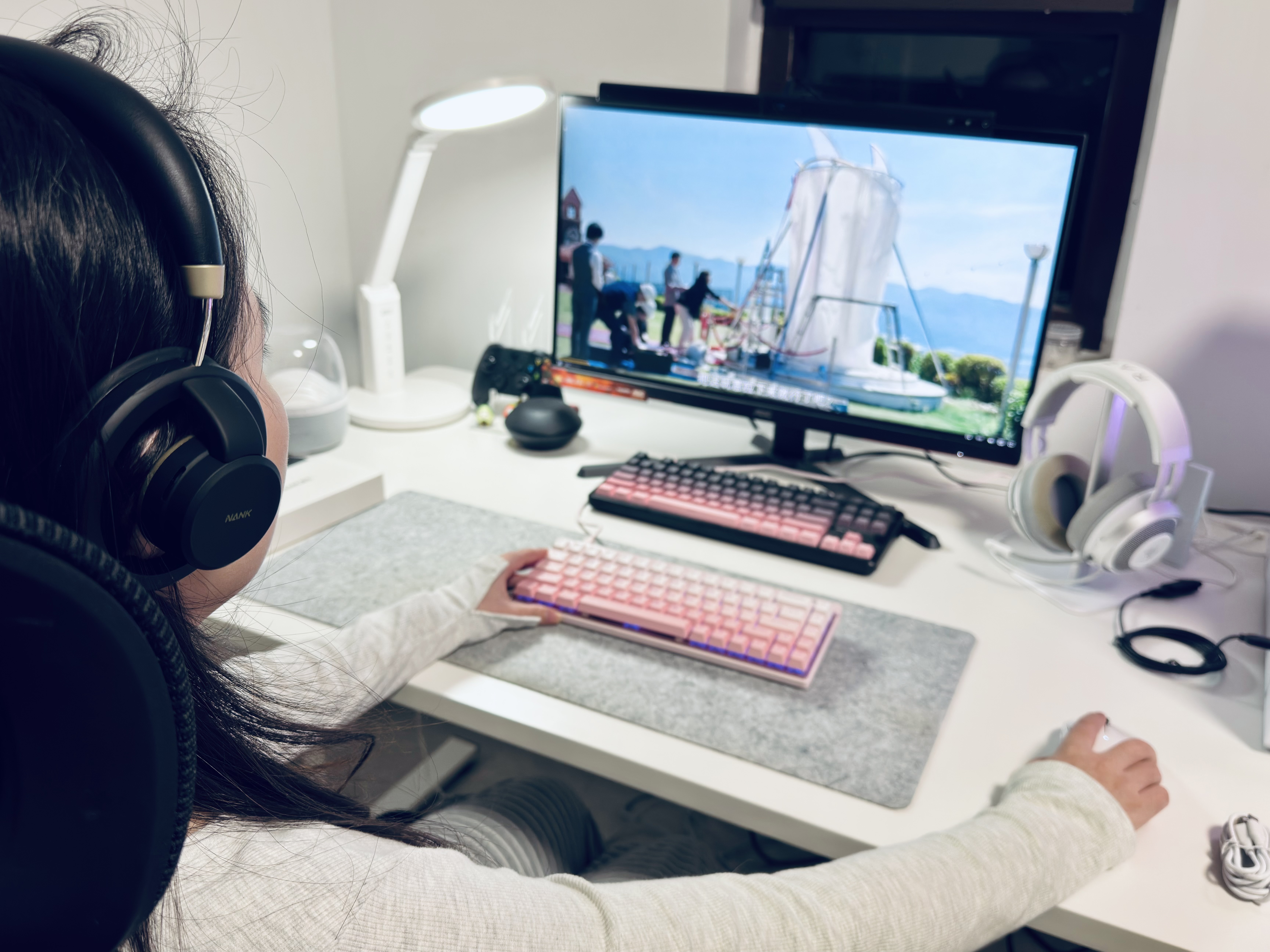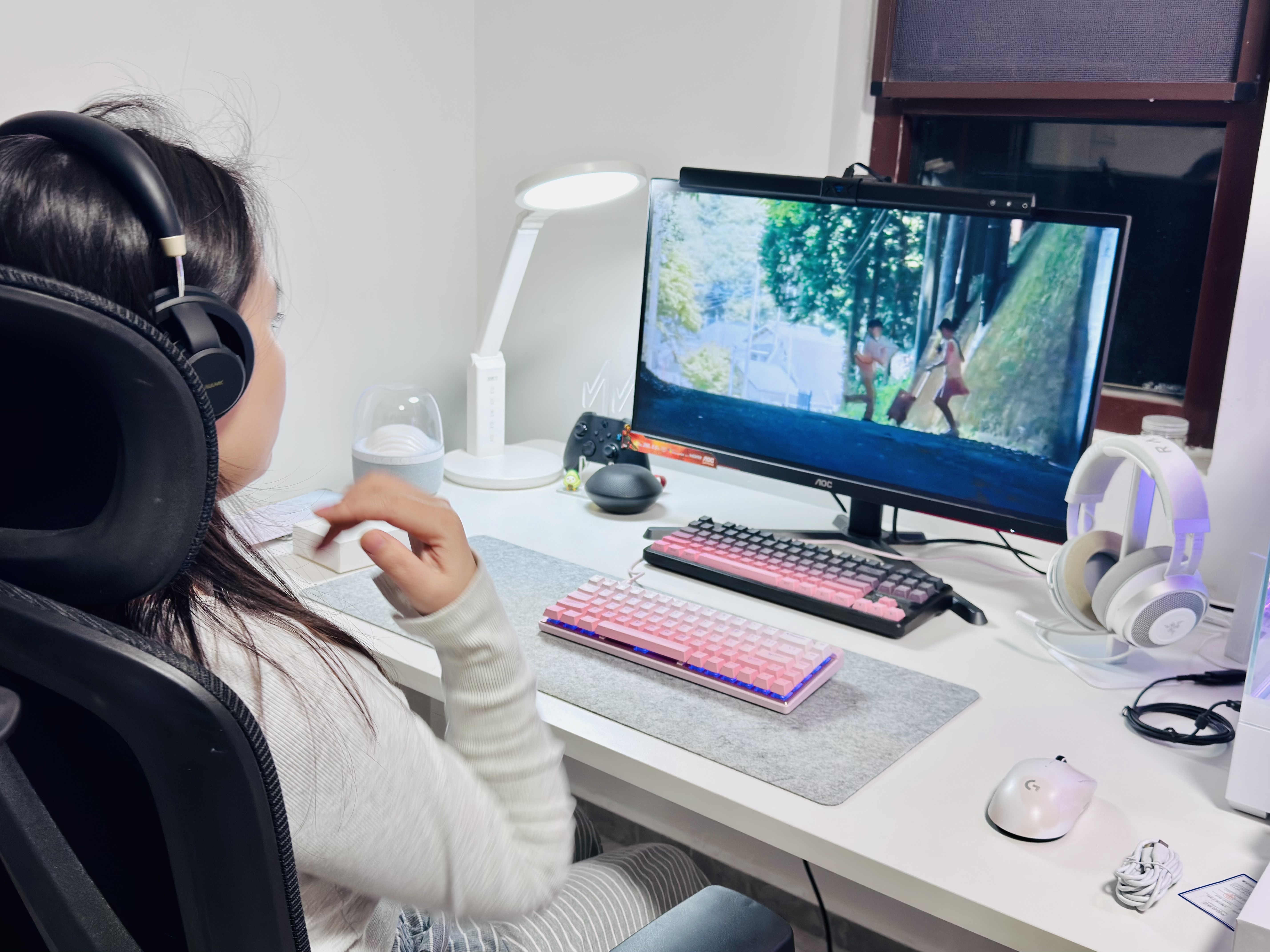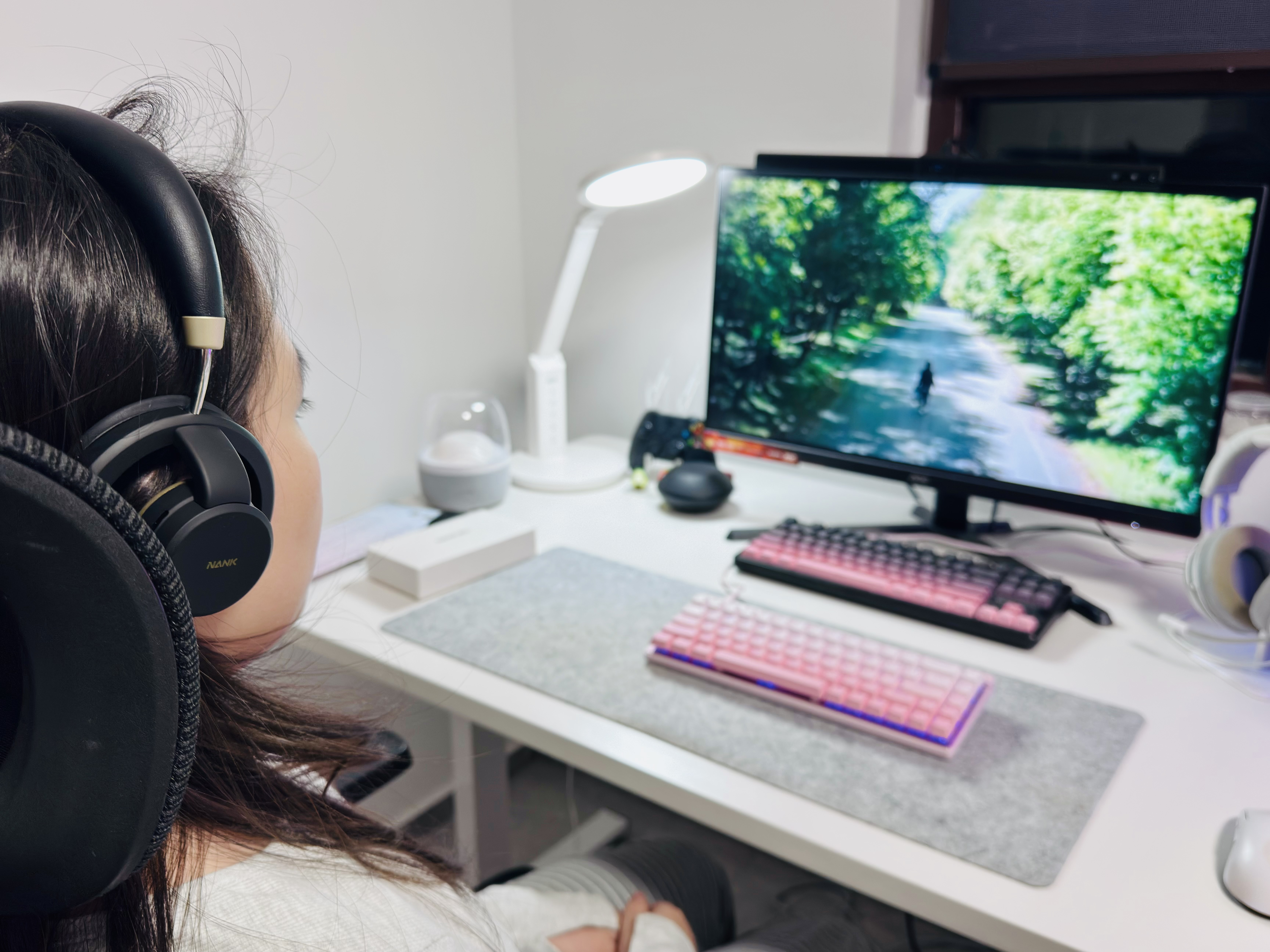 特别是戴上耳机听歌的时候,你会感受到普通头戴式耳机体会不到的开阔声场。听《Bad Guy》时,那种低频鼓点声的清晰程度,你都怀疑是摆了两个不菲的音箱在脸庞。当然了,高音也不错,不会出现爆音、糊声,相当透亮。