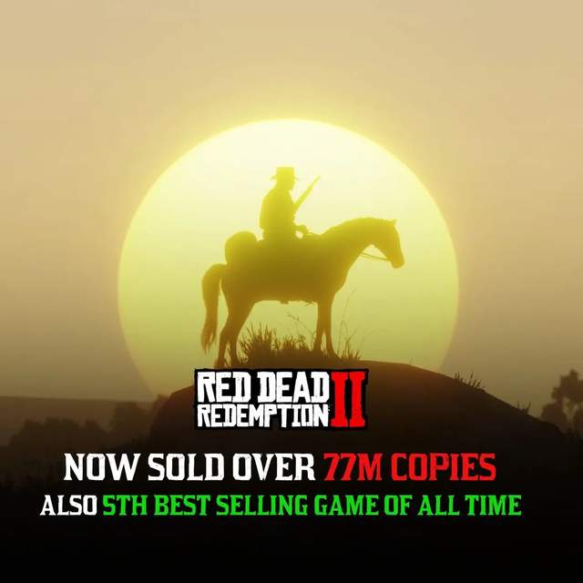 T2财报确认《荒野大镖客2》最新销量为7700万套,和任天堂游戏《马里奥赛车8》几乎打了个平手。这意味着这两款游戏目前并列第五名。