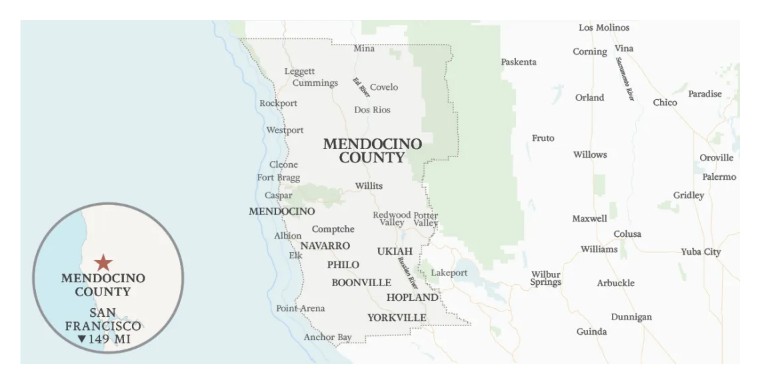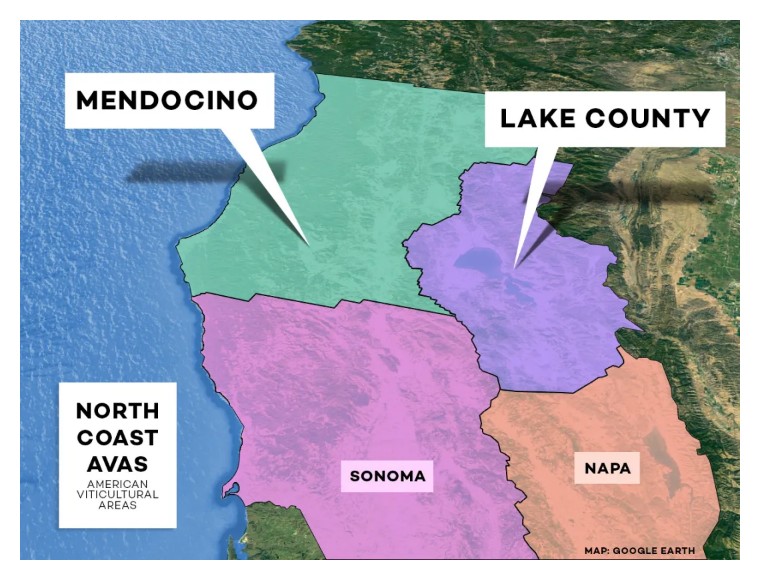 门多西诺县葡萄酒产区位置