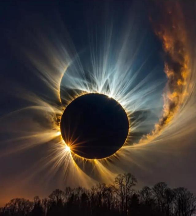 日冕是太阳最外层的大气,但非常稀薄,在强烈的阳光下是无法看到的。自然状态下,只有通过日全食的现象,通过月亮遮挡住太阳的本体,日冕才有可能显现出来。