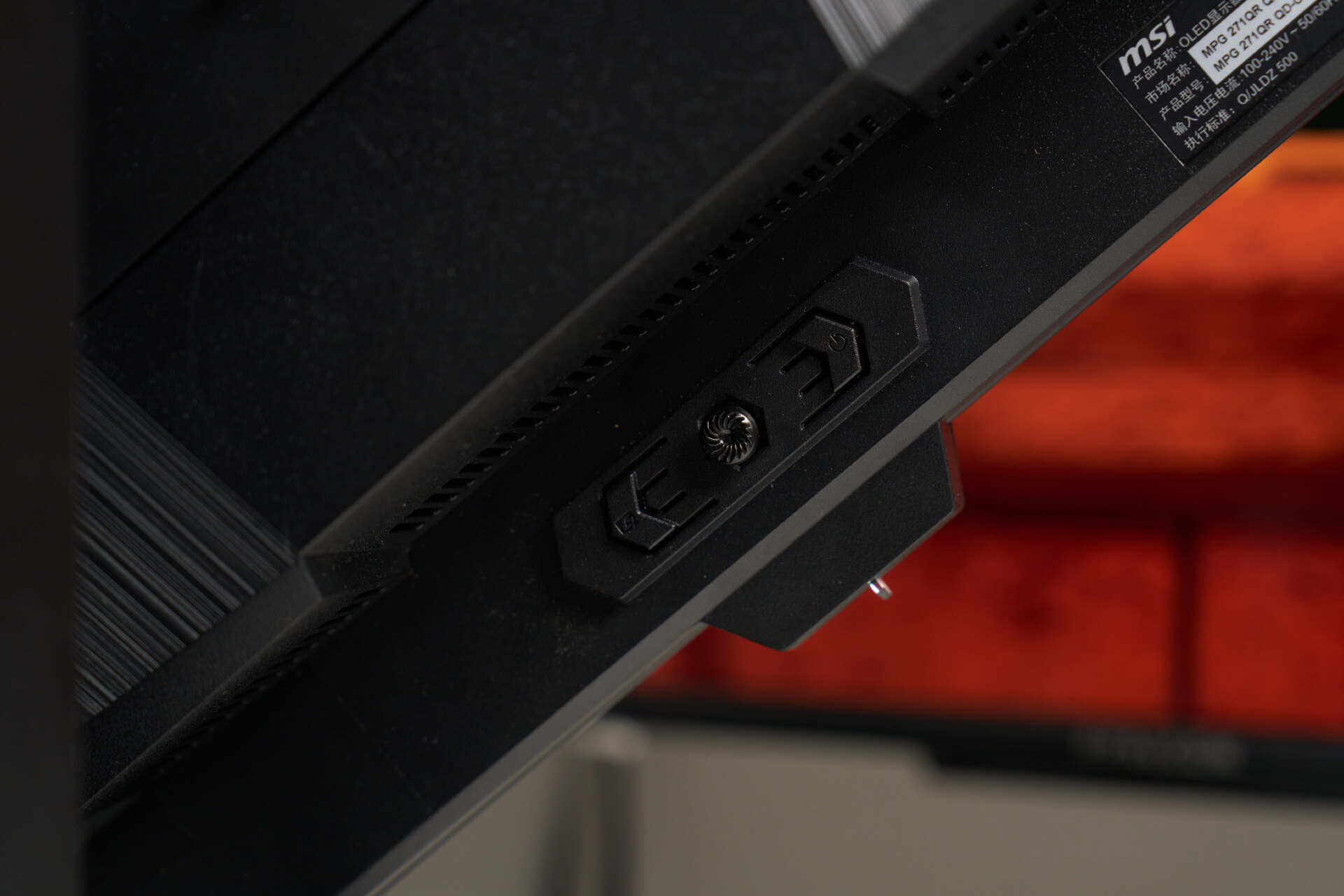 操控交互层面,微星 MPG 271QR QD-OLED X50 的按键布局兼顾实用性与操作手感。机身标配2 枚实体按键与一枚 5 轴控制摇杆,两者协同配合 OSD 菜单系统,可实现显示参数调校、功能模式切换等操作的精准把控。摇杆的阻尼感经过精细调校,操作顺滑且不易误触,即便是新手也能快速上手完成各项设置。
