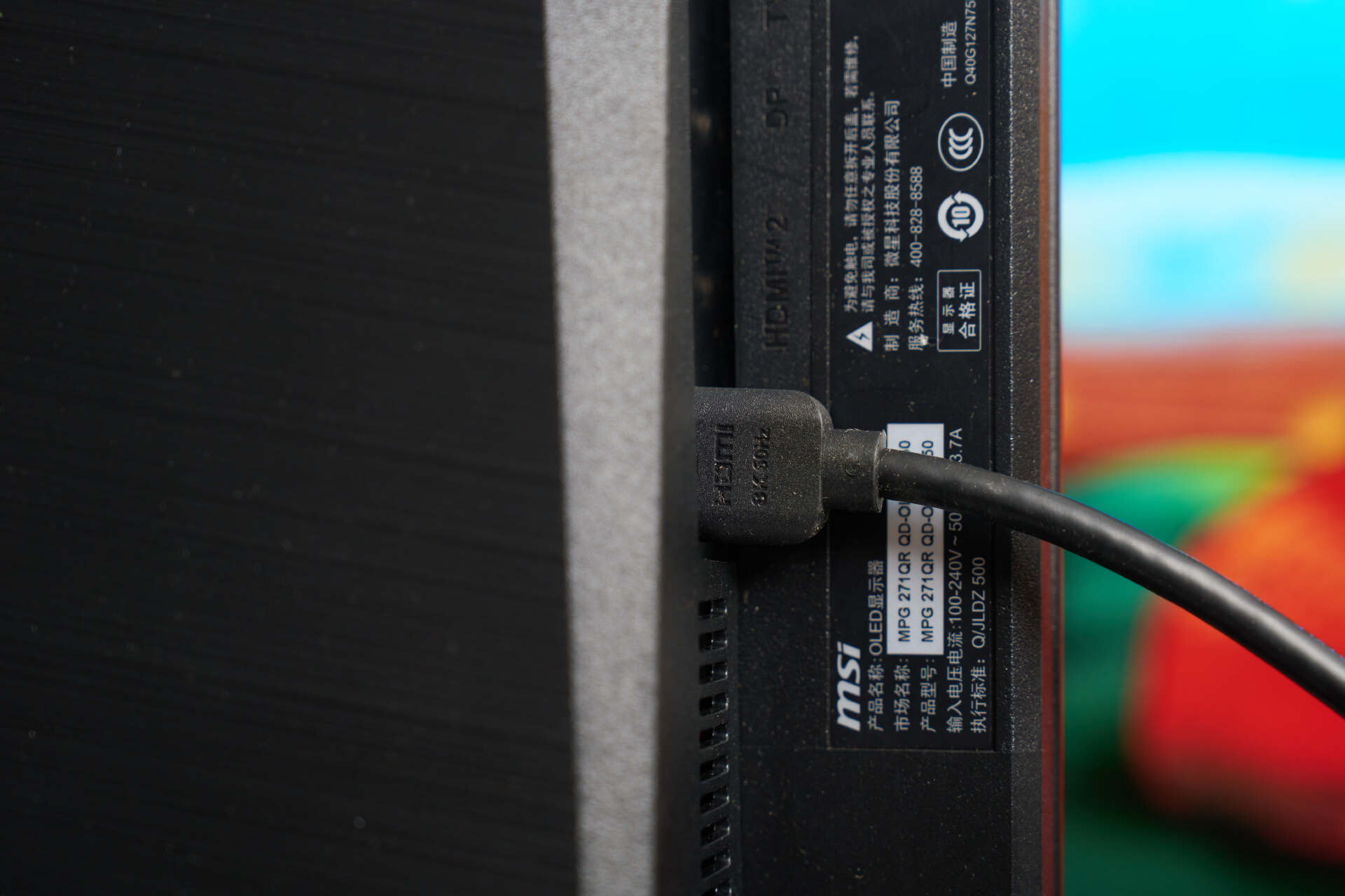 为充分释放 HDMI 2.1 与 DP 2.1a 双接口的性能潜力,微星 MPG 271QR QD-OLED X50 显示器标配高规格传输线材,其中 DP 2.1 线材尤为亮眼。该线材凭借 80Gbps 的满血带宽,无需依赖 DSC(显示流压缩)技术即可实现 4K@240Hz 分辨率与刷新率的无压缩传输,从根源上规避了压缩技术可能带来的画质损耗风险,兼顾高清晰度与画面纯净度。同时,DP 2.1a 接口还原生支持 DSR(数字分辨率缩放)与 DLDSR(深度学习数字分辨率缩放)功能,能够通过算法优化低分辨率画面的显示效果,让玩家在兼顾帧率的同时,享受更细腻的视觉体验。