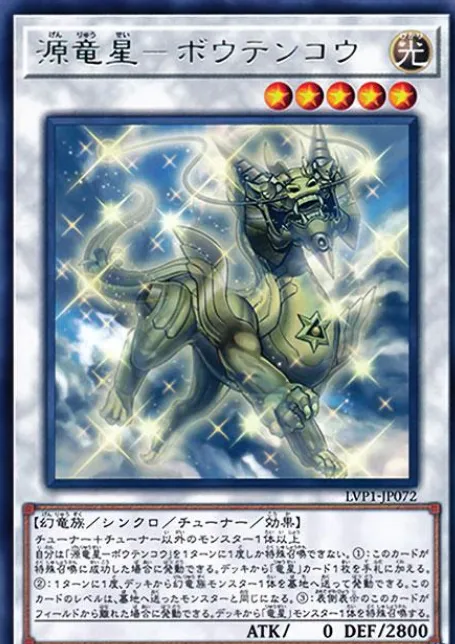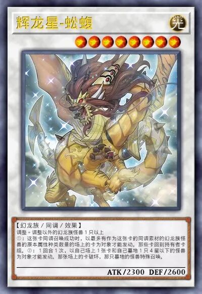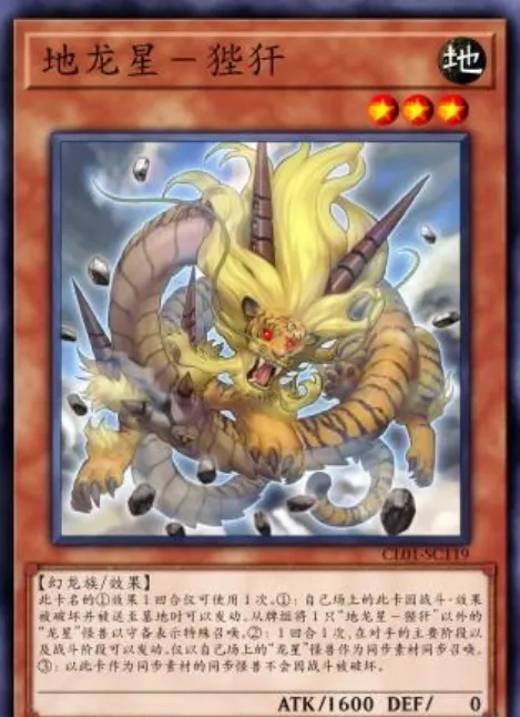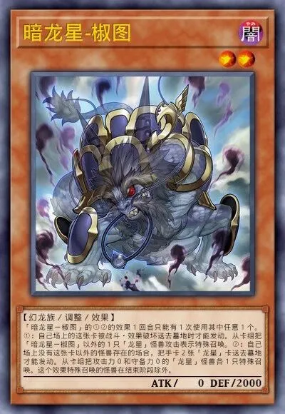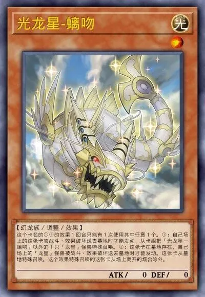 5星非调整。作为同调素材时,赋予该同调怪兽不受对方效果影响的抗性,是制造高强度终端的关键组件之一。龙星的九支