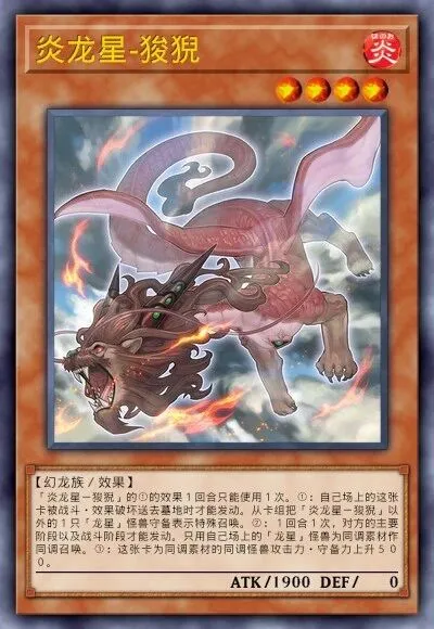赋予抗性。作为同调素材时,该同调怪兽获得不受魔法卡影响的效果。炎龙星-狻猊