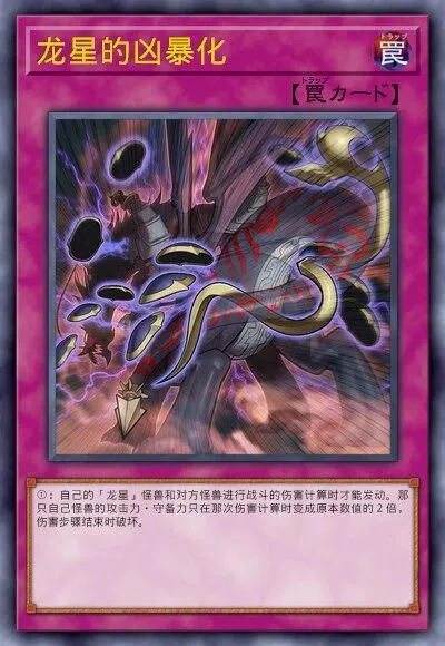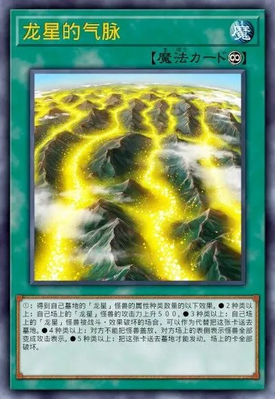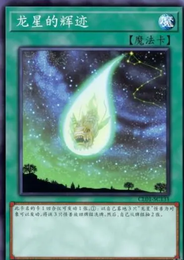虽为场地,但效果等同于魔法。一回合一次,自己场上的卡因对方效果破坏时,可从卡组特召1只龙星。重要保护与续航手段,通常由“源龙星”检索。龙星的辉迹