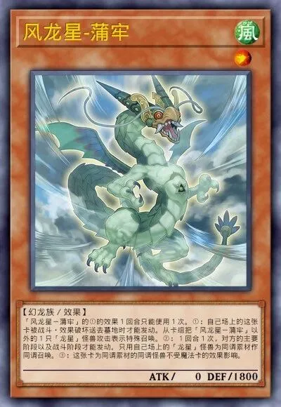 赋予抗性。作为同调素材时,该同调怪兽获得不受陷阱卡影响的效果。风龙星-蒲牢