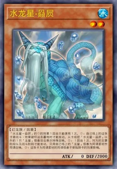 资源循环关键。核心调整。遗言拉怪;在墓地可除外自身以复活墓地另一只龙星。水龙星-赑屃