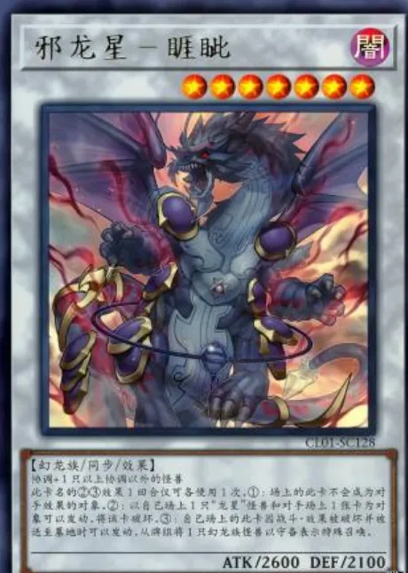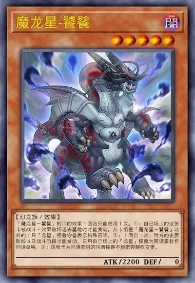 核心解场终端。同调成功时可弹回场上最多2张卡;被破坏时可特召卡组幻龙族。魔龙星-饕餮
