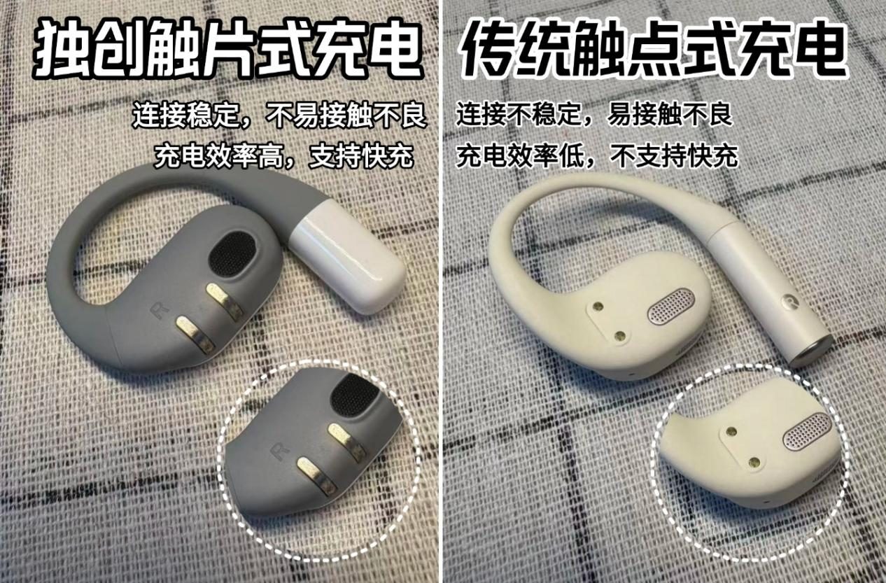 续航上,单只耳机能连续使用 8 小时,加上充电仓总共能达到 32 小时,一周充两次电基本就能满足日常需求。它独创的触片式充电,比传统触点式更可靠,不容易出现接触不良的情况,充电速度也更快。防水等级达到了 IPX6,比同类型很多耳机都高,就算出汗或者遇到小雨,也不影响正常使用。