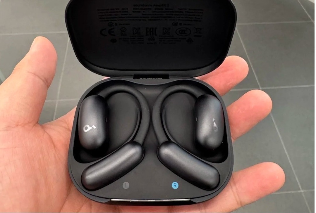 佩戴体验上,8.7 克的超轻机身,戴在耳朵上几乎感觉不到重量,独特的双折角设计耳挂,即便在动作幅度稍大的场景下,耳机也能稳稳固定在耳部。
