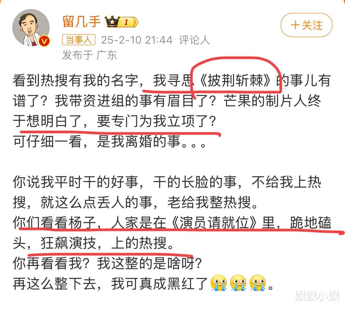 在离婚上热搜后,留几手还发文喊话芒果制片人上《披荆斩棘》??