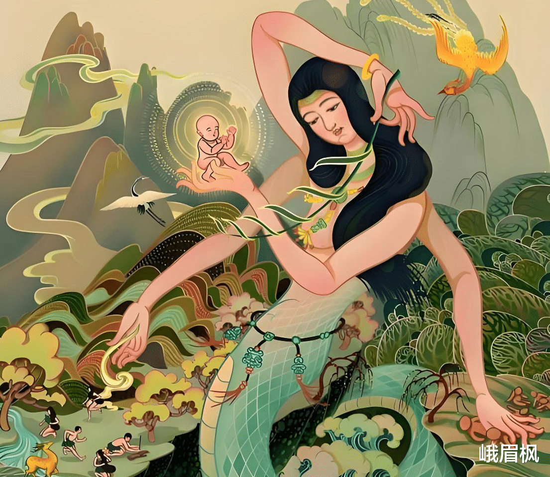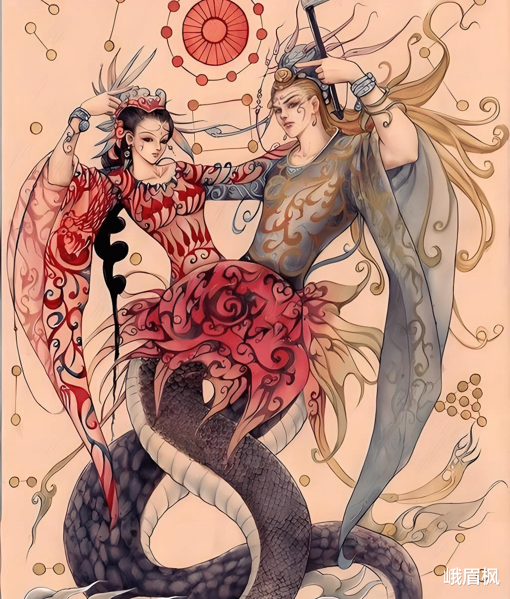 这俩孩子都是人首蛇神,后来结为夫妻并生子。