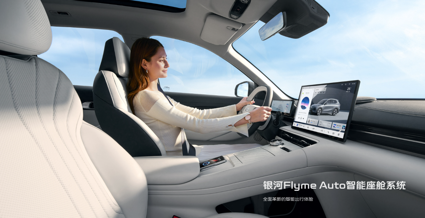 智能体验的优化则进一步提升了用车便捷性。银河Flyme Auto系统新增高德地图绿波出行功能,可智能规划绿灯通行路线,HUD同步显示红绿灯倒计时;一键洗车模式自动关闭车窗、天窗并切换内循环;QQ音乐Flyme Sound专区支持7.1声道全景声,配合16扬声器和1000W独立功放,带来沉浸式听觉体验。语音控制系统优化32项车控指令,响应速度更快,操作更自然。