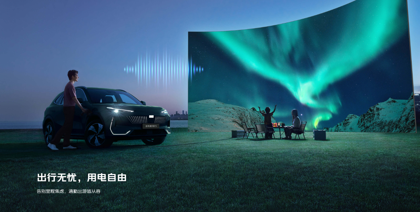 户外场景下的用电需求,是纯电车型的另一大考验。26款银河E5长续航版的6.5kWh外放电功能,可支持露营时电磁炉连续使用2小时、车载冰箱运行3小时、投影仪播放4小时。实测数据显示,即使用完这些设备的耗电量,剩余电量仍能为家用冰箱和路由器持续供电超过48小时。