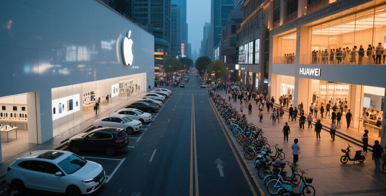 盛夏的阳光炙烤着这座城市的欲望和雄心。在堪称全球商业橱窗的这条街上,两家店的景象构成了这个时代最有趣的注脚。一家是苹果的旗舰店,设计简约,玻璃幕墙通透,里面的人流依旧,但似乎少了几年前那种朝圣般的狂热。而在它不远处,华为的旗舰店里,气氛却像是被点燃的引信。