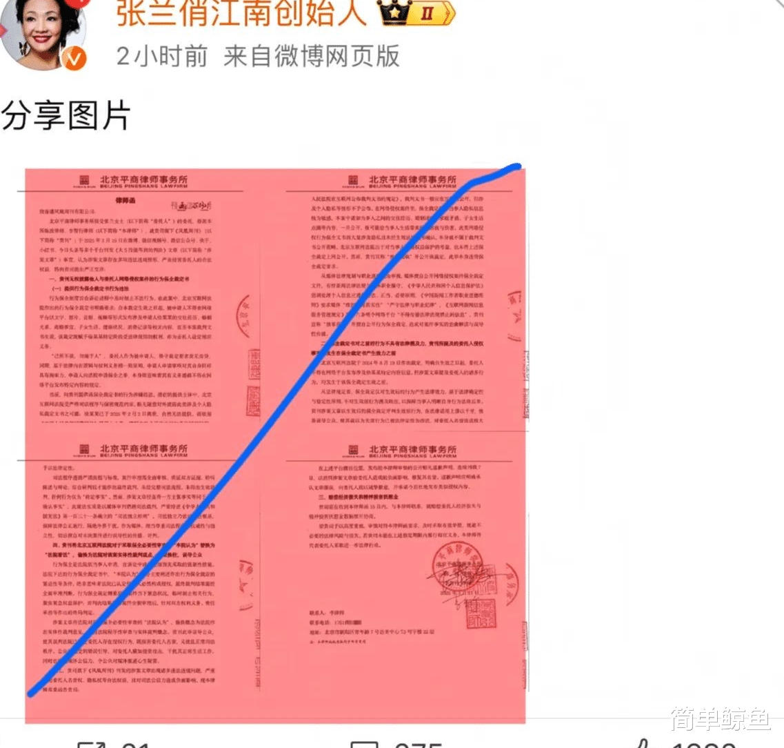 张兰反击了!刚刚张兰在网上晒出了平商律师事务所发布的律师函!