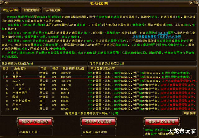 这次名动江湖也消费了400万元宝,拿下了奇骨。