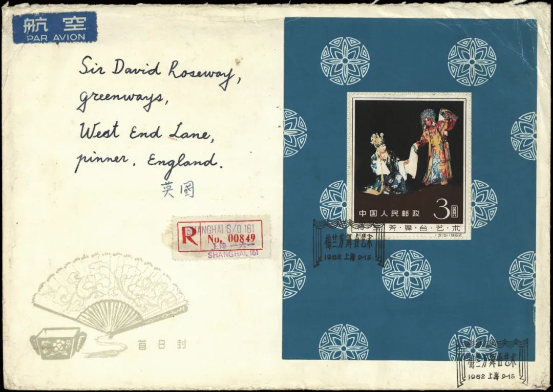 1962年纪94M梅兰芳型张总公司首日封1件,上海赵士骏首日航空挂号寄英国Roseway,销9月15日上海首日纪念戳,盖当日上海日戳及9月20日伦敦到达戳,保存较好