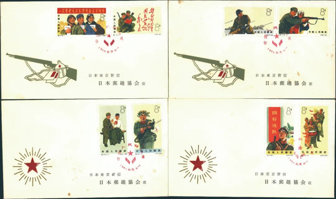 1965年特74解放军邮趣协会总公司首日封4枚全套,北京首日寄邮趣协会,分别贴特74全套,销8月1日北京首日纪念戳,轻微黄,保存较好