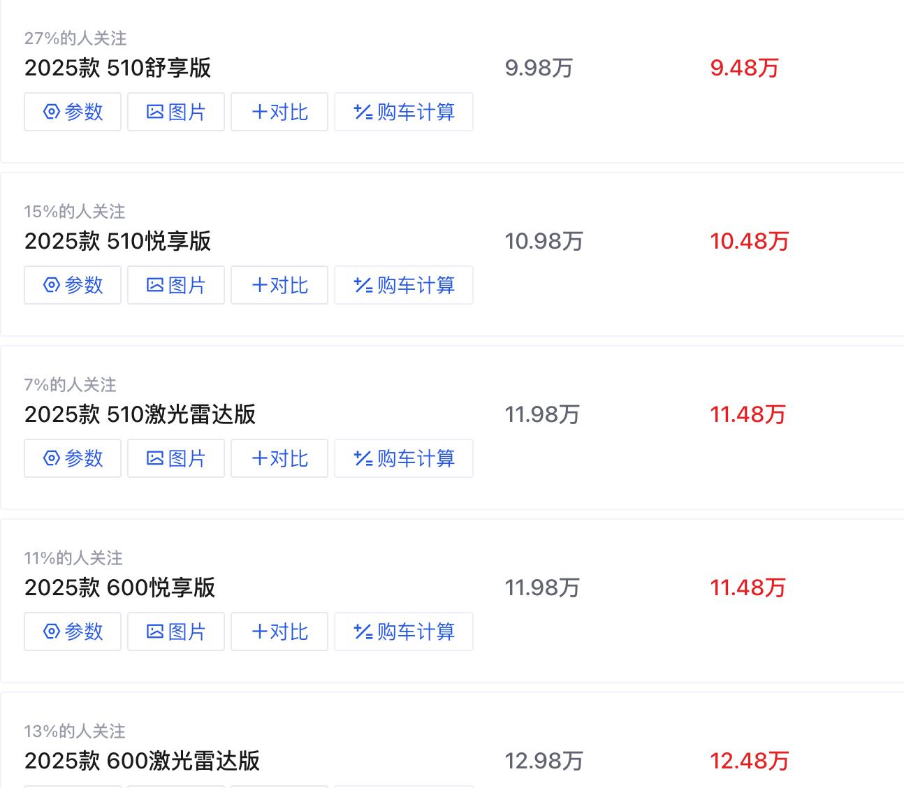 顶配的600激光雷达智能辅助驾驶版(12.98万元)集续航与智能化于一身,适合预算充足且不愿妥协的消费者。
