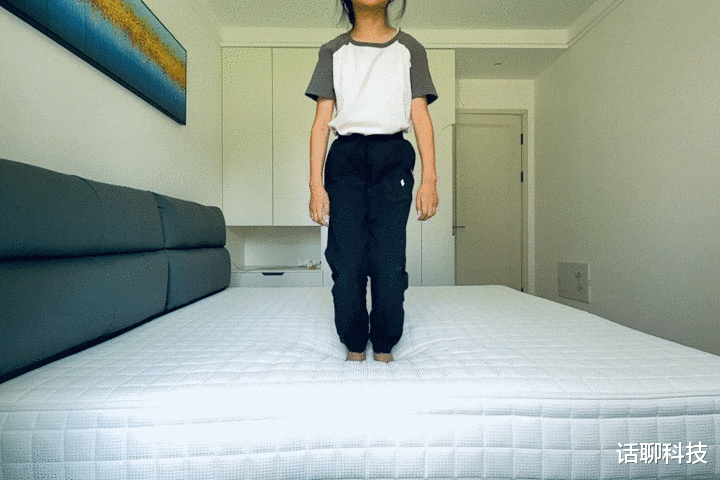 而整床支撑来看,独立弹簧+榫卯结构骨架,床垫的整体支撑性做的也很好,哪怕10来岁的孩子在床上跳来跳去,也不会给人有一种整体的垮塌感,只是局部弹性形变。