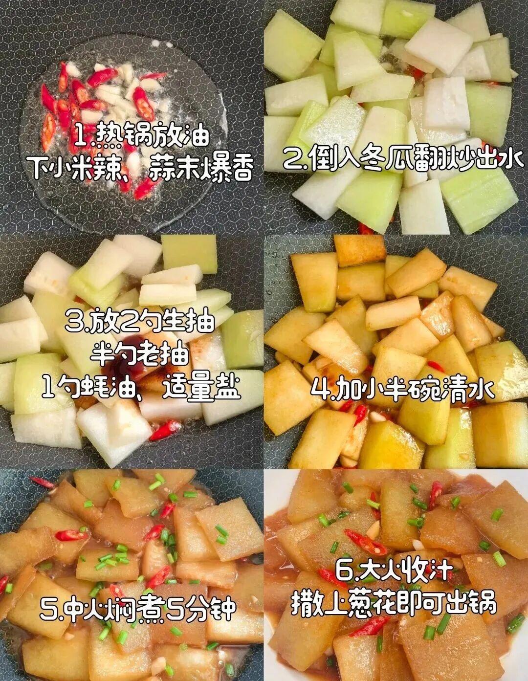 冬瓜、大蒜、小米辣、小葱、生抽、老抽、蚝油、盐、食用油