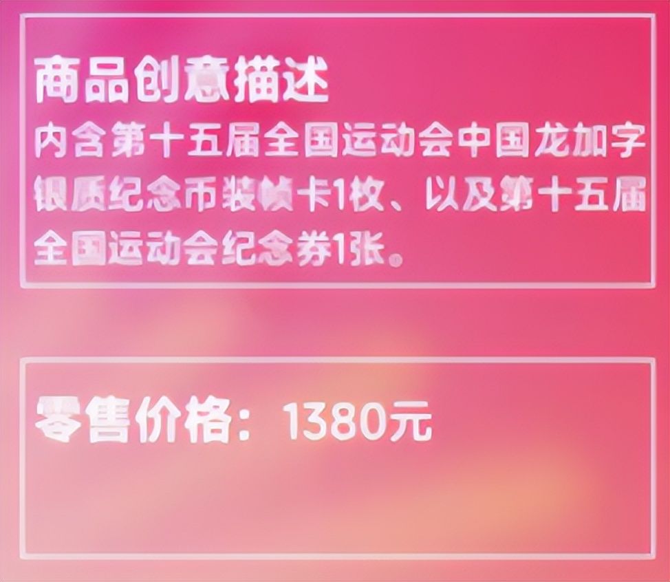 相对来说,全运会题材的热度并不高,而且和中国龙关联性不强。而作为普制币卡册,发行价竟然达到1380元,再创历史新高。