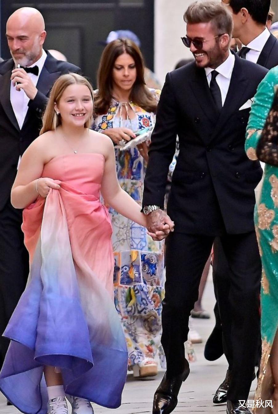 她穿着连衣裙站在妈妈身边,个头都快赶上妈妈了,眉眼像极了贝克汉姆,气质却带着维多利亚的冷艳,镜头一对准,全场的闪光灯都快连成一片,不得不感慨一句“这颜值,比她爹妈年轻时还能打”。
