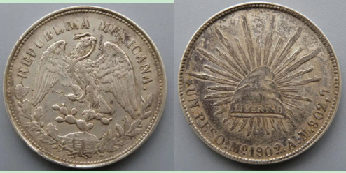 墨西哥鹰洋诞生于1521年西班牙殖民者征服墨西哥之后。西班牙殖民者发现墨西哥拥有丰富的银矿资源,于是在此建立了大规模的银矿开采与铸币厂。1535年,墨西哥城造币厂成立,开始铸造西班牙银元。1810年,墨西哥爆发独立战争,1821年宣布独立。1823年,墨西哥共和国开始铸造带有本国特色的银元,因币面图案是一只展翅雄鹰叼着一条蛇,单足立在仙人掌上,故而被称为 “墨西哥鹰洋”。