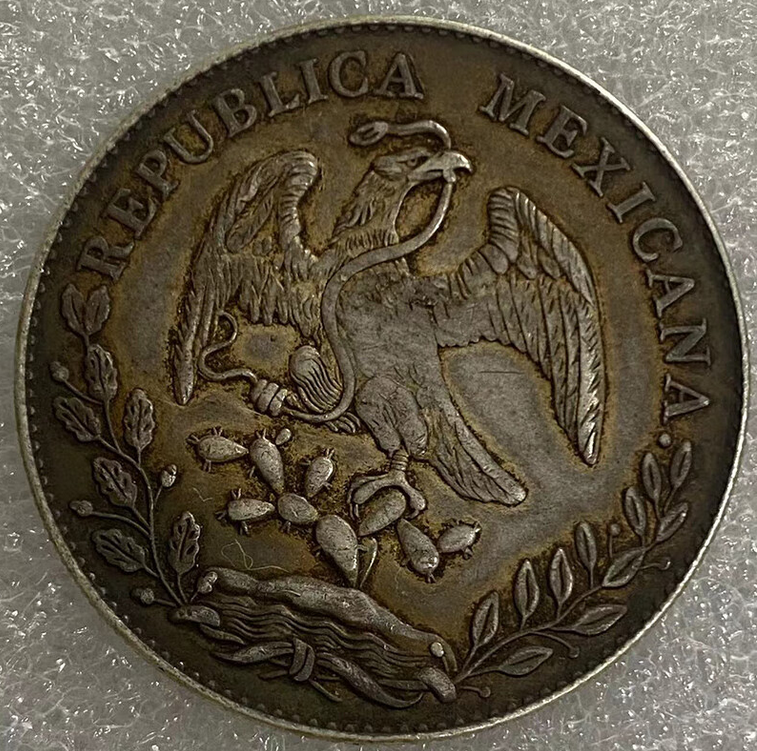 墨西哥鹰洋的铸造工艺十分精湛。其币面设计融合了墨西哥传统文化元素,雄鹰叼蛇的图案源自阿兹特克人的传说,象征着墨西哥的独立与荣耀;边缘刻有规则的齿纹,不仅美观,还能有效防止人们私自刮削银料,保证银元的重量与纯度。在铸造技术上,墨西哥造币厂采用先进的机器铸造,保证了银元质量的稳定和统一。每枚鹰洋含银量高达90.3%,重量约27.07克,成色与重量的标准化,使得鹰洋在国际市场上拥有极高的信誉。