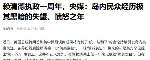 海峡导报2025-05-20——赖清德执政一周年,央媒:岛内民众经历极其黑暗的失望、愤怒之年