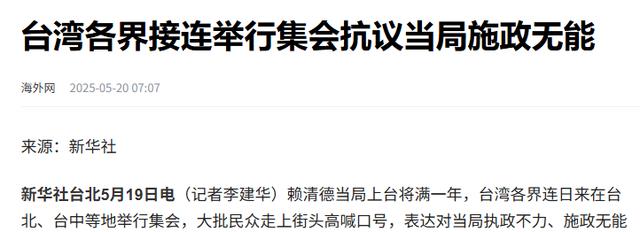 海外网2025-05-20——台湾各界接连举行集会抗议当局施政无能