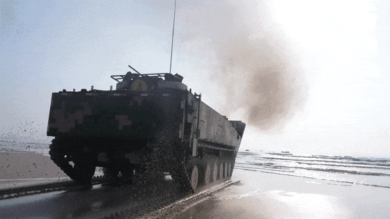 据了解我军05式两栖战车的海上机动性在世界上处于领先地位。