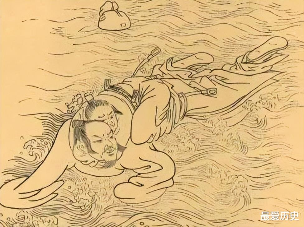 ▲陆秀夫背着8岁的宋帝昺投海自尽。图源:网络