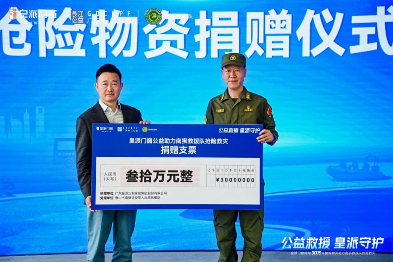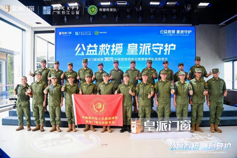 本次活动,皇派门窗以18年“做好门窗,守护万家”的初心为引,携手广东省长江公益基金会,向佛山市南狮退役军人志愿救援队捐赠30万元,助力南狮救援队添置救援车、自扶正救援艇、救援头盔、救援服、呼吸器、救生衣、帐篷等专业抢险物资与装备,帮助提升南狮救援队的整体装备水平和应急救援服务能力,全力支援紧急救援与受灾群众救助,共筑安全防线,守护美好生活。